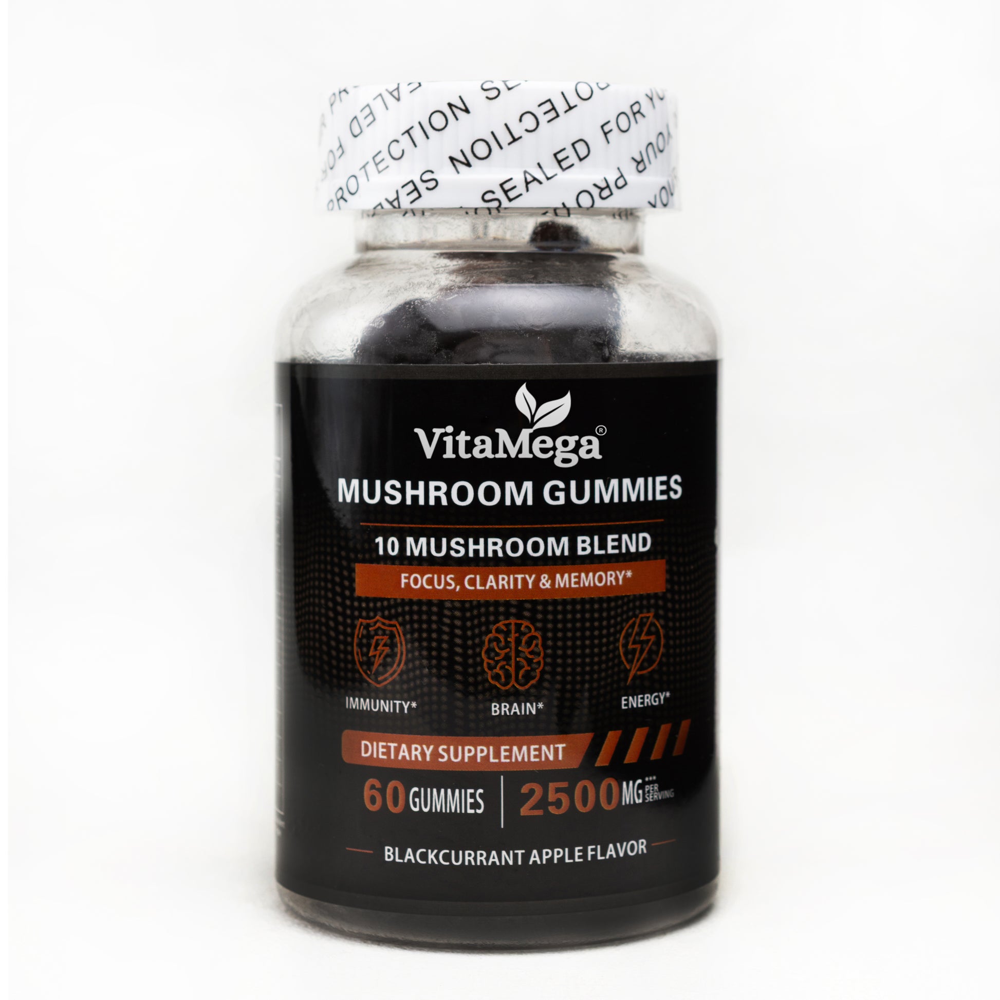 Vitamega Mushroom Super Blend Gummies – Lion’s Mane, Chaga, Cordyceps, Maitake, Reishi & Tremella for Brain, Mood & Stress Support – 60 Vegan Gummies – Blackcurrant Flavour